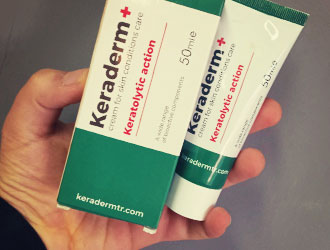 هذه هي الطريقة التي ظهر بها كريمات. KeraDerm - علاج سريع للقدم المتضررة وفطريات القدم.